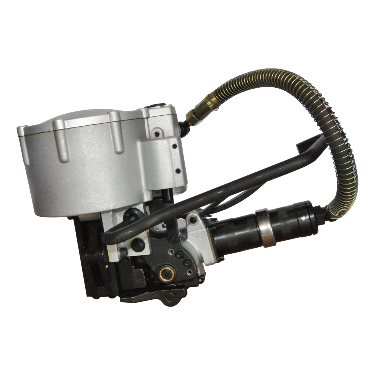 Acionado por ar comprimido, o SSPZ32 opera com pressão entre 0,35 e 0,6 MPa e atinge velocidade de tensionamento de até 5,3 m/min (sem carga). Com força de tensionamento superior a 9.800 N e força de aperto do selo acima de 16.850 N, é ideal para aplicações que exigem cintagem firme e de alto desempenho, aumentando a produtividade em operações intensas.