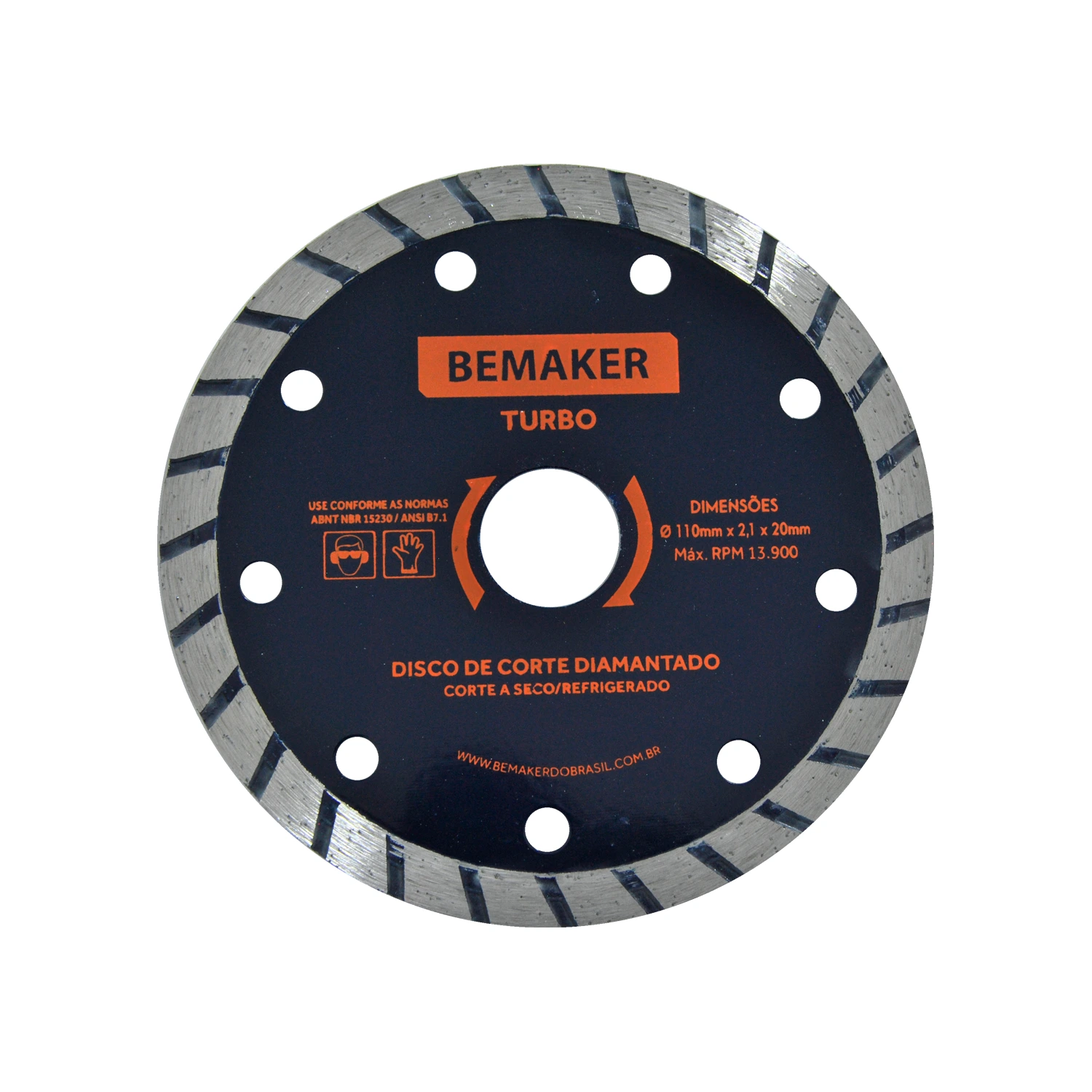 O design turbo gera uma leve turbulência de ar, auxiliando na refrigeração do disco mesmo sem água. Porém, o corte a seco pode aumentar o risco de lascamento e gerar excesso de poeira.