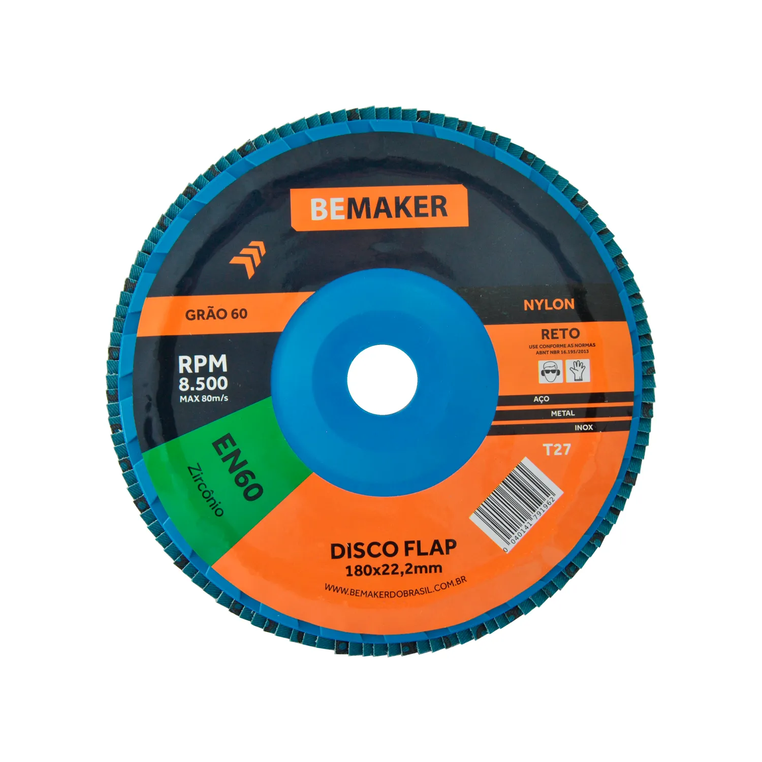 Projetado para uso em esmerilhadeiras, o Disco Flap de Nylon-Zircônia opera com rotação de até 8.500 RPM, garantindo desbastes eficientes em diferentes materiais. Suas lixas de grãos de zircônio, dispostas em formato de leque (flaps) sobre uma base de nylon, proporcionam alta taxa de remoção de material, excelente durabilidade e acabamento uniforme.